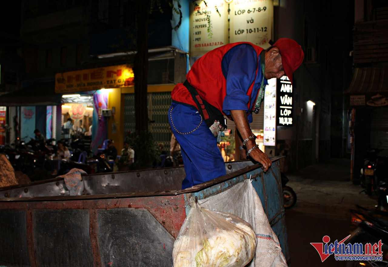 Ngày cuối năm, thành phố lên đèn thật sớm. Khi mọi nhà quây quần bên nhau, hàng quán chật kín khách, ông Tống Văn Thơm (75 tuổi, TP.HCM) và vợ Nguyễn Ngọc Đào (68 tuổi) lại kéo xe ba gác đi thu gom rác sinh hoạt.
