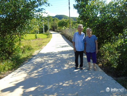 Vợ chồng cựu giáo chức già bên “con đường tình nghĩa” do hai ông bà đi quyên góp mấy năm qua để làm. |