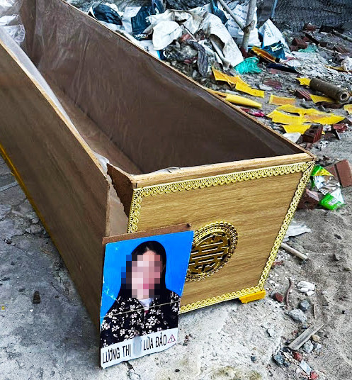 Thông tin VietNamNet tìm hiểu, thời điểm đó, rất nhiều người đã kéo đến nhà ông B. để đòi tiền nhưng bất thành. Trước sức ép ngày càng lớn, bà M. rời nhà, đi đâu không ai biết. Đỉnh điểm, 16h ngày 20/11, một số người kéo đến đặt quan tài, rải vàng mã trước nhà ông bà M. để gây sức ép, đòi nợ.