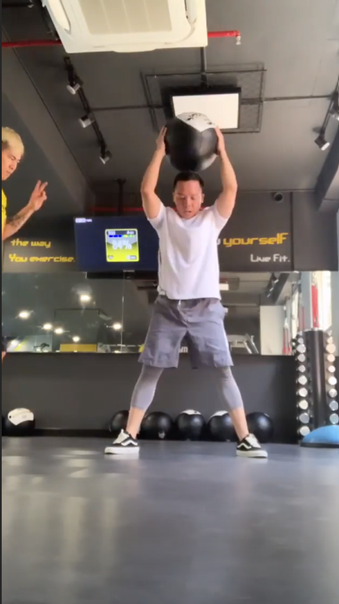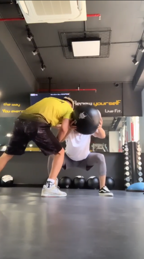 Đôi vợ chồng son nghiêm túc tập luyện theo hướng dẫn viên. Không xuất hiện chung trong một khung hình nhưng chỉ cần nhìn bối cảnh phòng tập xung quanh là fan hâm mộ đã tinh mắt phát hiện ra họ đang tập luyện cùng nhau.
