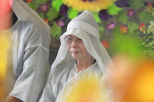 | Vợ cố NSND Thế Anh phải có người dìu đi trong lúc di quan vì quá đau buồn. |