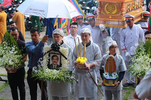 | Anh Thế Phương - con trai cả của NSND Thế Anh cầm lư hương, con trai thứ Thế Duy mang di ảnh của cha trước lúc di quan về nghĩa trang Phúc An Viên, quận 9, TP.HCM. |