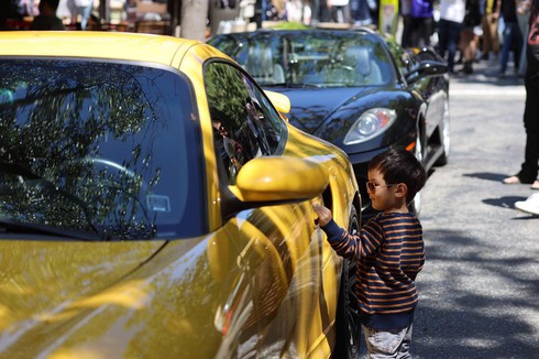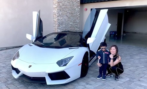 | Bà xã Đan Trường cùng con trai bên chiếc siêu xe 20 tỷ. |