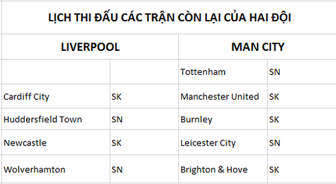 Lịch thi đấu của Liverpool và Man City tại Premier League. |