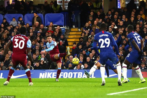 Trên sân nhà, Chelsea (áo xanh) bất lực nhìn West Ham ra về với 3 điểm trong tay. |