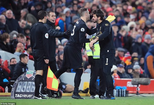 Liverpool chơi thiếu người trong khoảng 15 phút cuối trận do Allison Becker (phải) bị thẻ đỏ. |