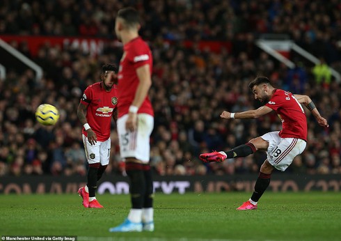 Tân binh Bruno Fernandes của M.U có trận ra mắt CLB mới và thể hiện tài năng bằng cú sút xa nhưng không thành bàn. |