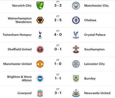 Trong những trận đấu còn lại, đã không có bất ngờ nào xảy ra khi Liverpool, Tottenham và Chelsea đều có những chiến thắng thuyết phục, ngoại trừ Manchester United đã quá may mắn mới giữ lại được 3 điểm trên sân Old Trafford khi tiếp đón Leicester City.