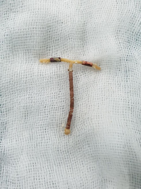 Vòng tránh thai bác sĩ lấy ra từ tử cung của bệnh nhân. |