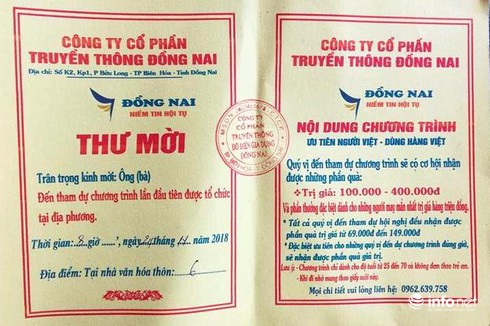 Thư mời với những phần quà tặng hấp dẫn từ phía Công ty Đồ điện gia dụng Đồng Nai. |