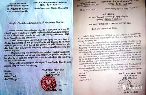Tuy nhiên, đến ngày 26/11/2018, UBND huyện này lại ban hành Công điện số 22/CĐ-UBND yêu cầu UBND các xã, thị trấn khi phát hiện Công ty cổ phần truyền thông điện gia dụng Đồng Nai đến liên hệ, xin giới thiệu sản phẩm thì tuyệt đối không được giới thiệu về các thôn xóm để tổ chức bán hàng và giới thiệu sản phẩm, đồng thời tổ chức lực lượng thường xuyên kiểm tra, phát hiện và xử lý kịp thời.