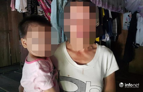 Đưa sổ khám bệnh cho chúng tôi xem, chị Đ. rơi nước mắt khi nhìn cô con gái bé nhỏ đang đùa nghịch ở sàn nhà.