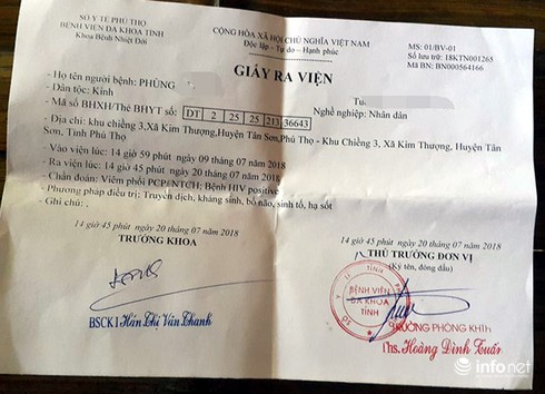 Cùng chia sẻ với chúng tôi, anh P.V.Đ., (45 tuổi, Kim Thượng), bác của cháu H.N.Q. cho biết anh được khoa Bệnh nhiệt đới (Bệnh viện đa khoa tỉnh Phú Thọ) chẩn đoán bị viêm phổi PCP/NTCH, dương tính với HIV.