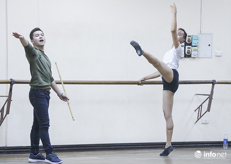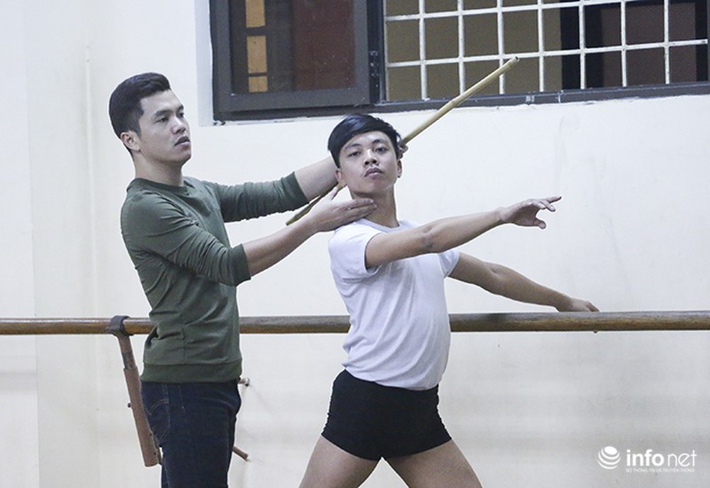 Ballet đòi hỏi sự chính xác cao về kỹ thuật nên các động tác cũng phải hoàn chỉnh, nếu tập luyện sai thì giảng viên sẽ chỉnh sửa tại chỗ khi nào đạt được mới thôi. Thầy Phạm Thái Sơn – phụ trách bộ môn Ballet cho biết: “ Múa Ballet không hề đơn giản. Đối với các bạn nam thì lại càng là thử thách lớn. Muốn thành công, các bạn phải chấp nhận gian khổ, đau đớn khi tập luyện thì mới có thể dẻo dai, mềm mại” |