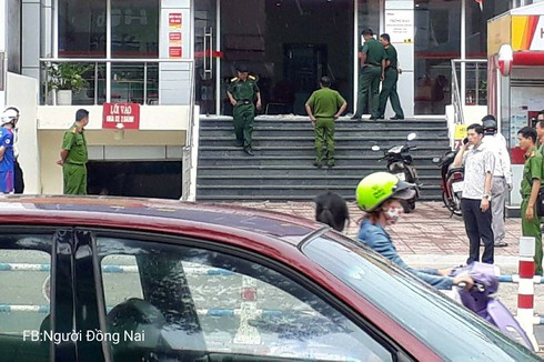 Tại đây, nam thanh niên đã vào phòng giao dịch và vứt túi màu đen về phía các nhân viên, hét lên: “Đưa hết tiền cho tao không tao chém".