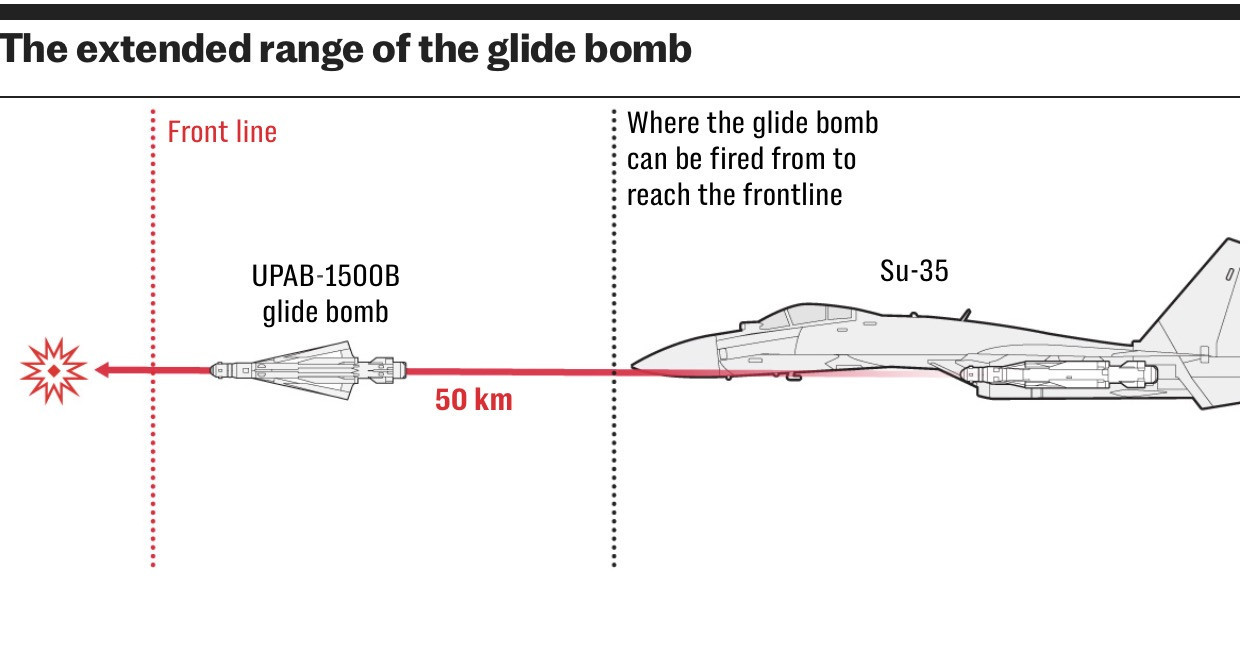 "Hiện tại, quân Nga đang sử dụng máy bay chiến thuật cho các nhiệm vụ chiến đấu dọc biên giới, ở tiền tuyến và khu vực bờ biển. Tại những khu vực đó, lực lượng Nga đã sử dụng rất nhiều bom lượn trong một tháng qua".