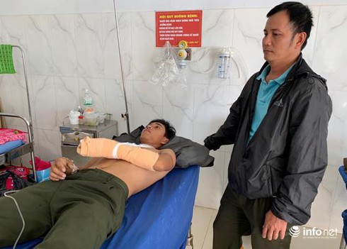 Cán bộ kiểm lâm bị lâm tặc chém đứt gân tay vẫnđang điều trị tại bệnh viện. |
