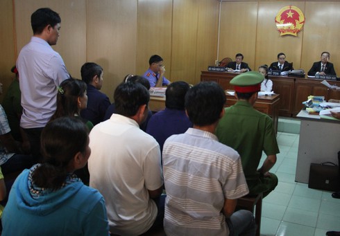 Các bị cáo trong vụ án tại phiên tòa sơ thẩm |