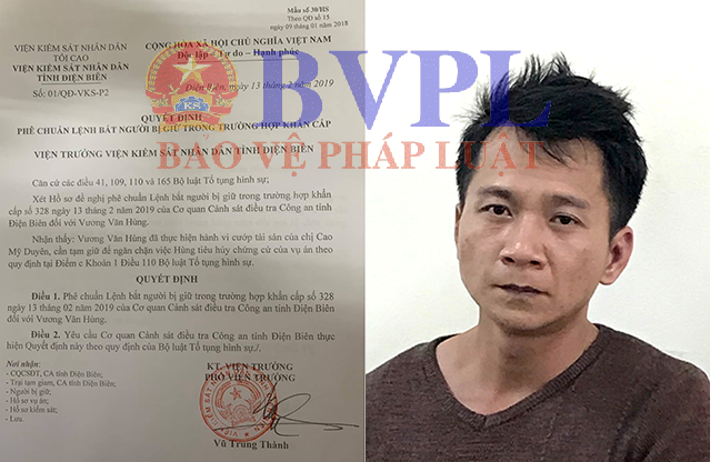 Về vụ việc này, ngày 12/2/2019, Công an tỉnh Điện Biên đã có thông tin chính thức. Tối qua 13/2, VKSND tỉnh Điện Biên cũng phê chuẩn Lệnh bắt người trong trường hợp khẩn cấp đối với Vương Văn Hùng (SN 1984) trú tại Tổ 25, phường Mường Thanh, TP Điện Biên Phủ.