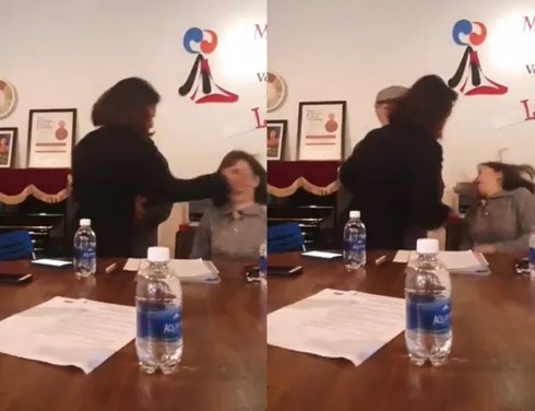 Phụ huynh hành hung giáo viên ngay tại cuộc họp (ảnh cắt từ clip) |