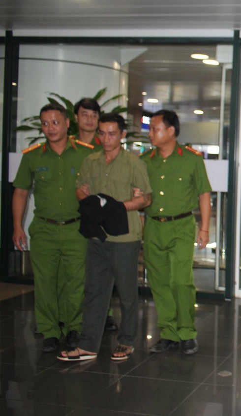 Nguyễn Văn Cảnh được công an dẫn giải từ Sân bay Nội Bài về Hòa Bình. |