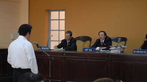 | Ông Ly Sam đang trả lời câu hỏi của Tòa trong phiên sơ thẩm |
