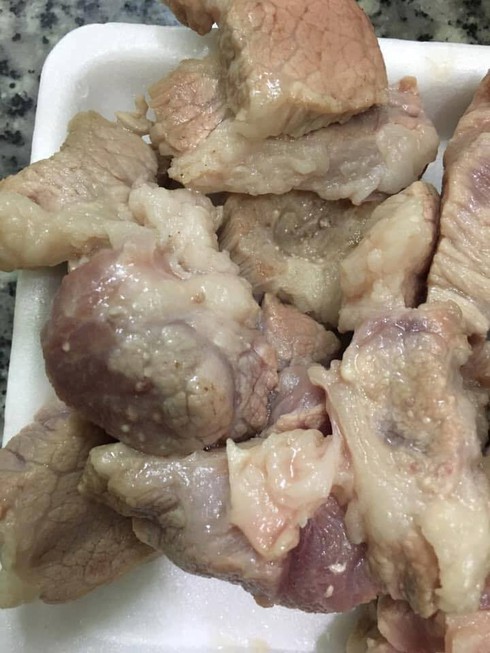 Thịt lợn có nhiều đốm trắng mà khách hàng nghi là thịt lợn nhiễm sán gạo |