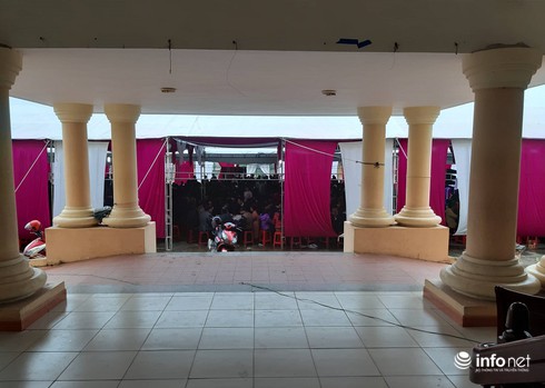 Cán bộ, nhân dân đến liên hệ làm việc với xã phải đi qua 2 dãy nhà rạp cưới, luồn lách giữa các mâm bàn và khách dự đám cưới vào được. Các phòng làm việc của Bí thư Đảng ủy, Chủ tịch UBND xã chưa hết giờ làm việc buổi sáng nhưng đều khóa cửa. Những phòng, ban làm việc khác mở cửa nhưng không có ai trực.