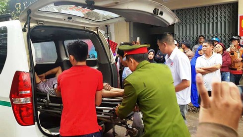 Môt người dân bị thương được sơ cứu ngay tại chỗ. |