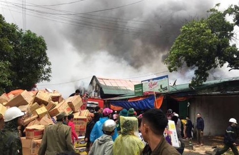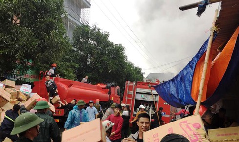 Vào thời điểm này, nhiều người dân phát hiện ngọn lửa bao trùm kho hàng tại khu vực trên, cột khói bốc cao nghi ngút. Phát hiện sự việc, nhiều tiểu thương lao vào bên trong kho hàng để cứu tài sản, hàng hóa ra ngoài.