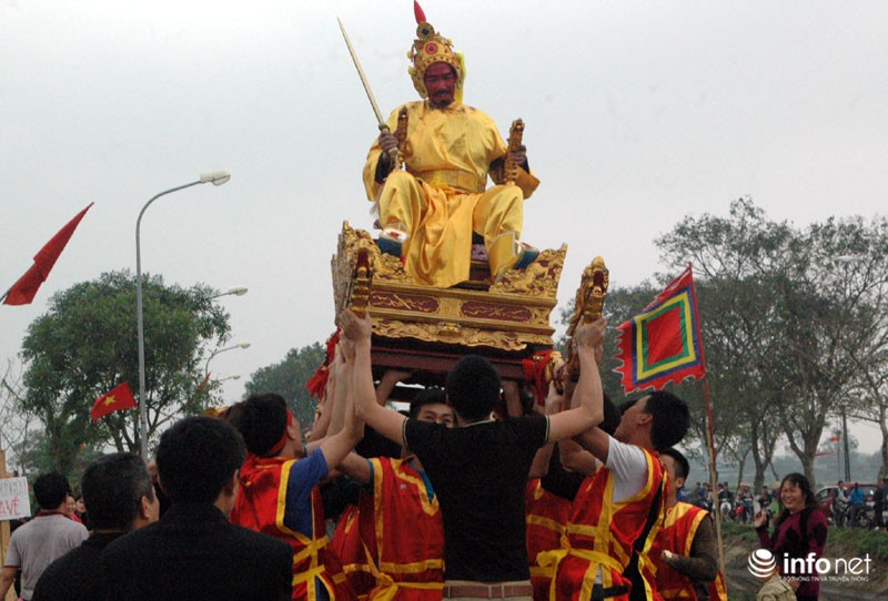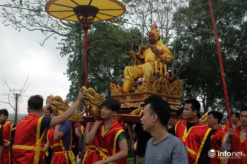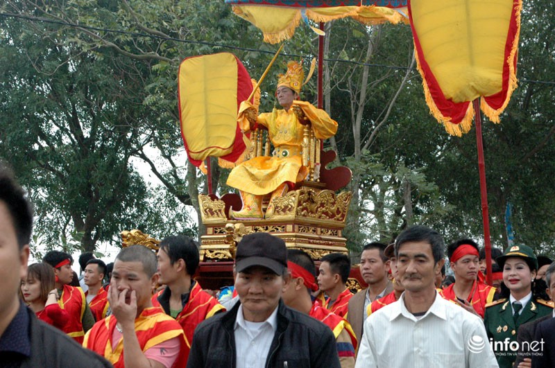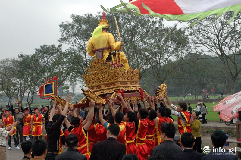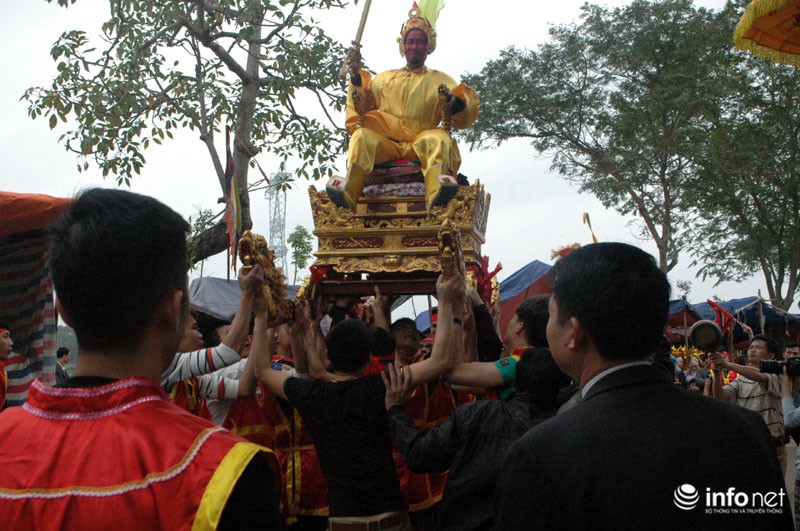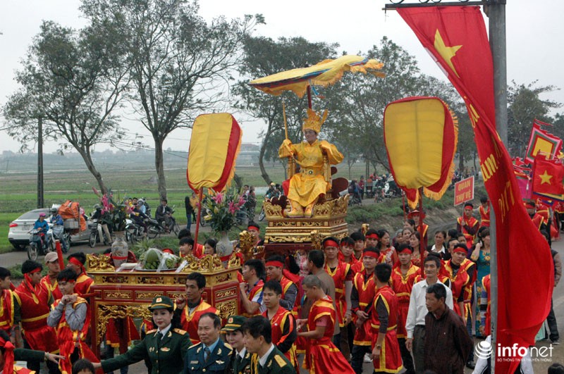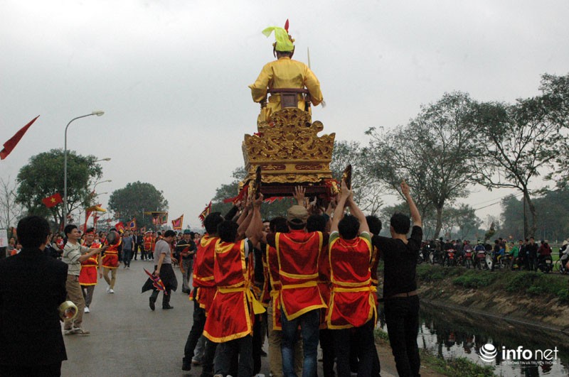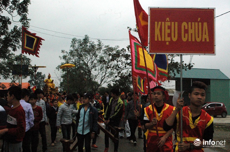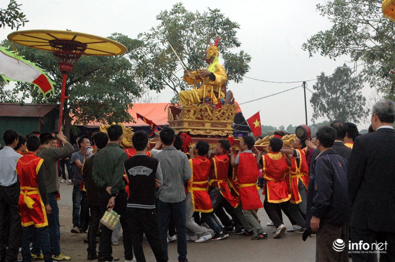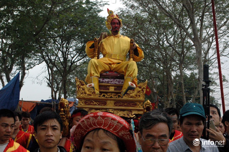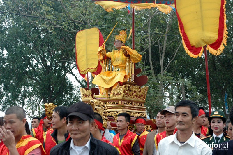 Vua, Chúa nhiều đời sau từng về đây bái yết nhưng thấy việc đi lại làm hao phí tiền bạc, công sức của nhân dân nên Vua ban chiếu cho dân làng làm nghi lễ rước Vua giả. Mỗi một năm người dân trong làng lại chọn ra những người cao tuổi xứng đáng để vào vai Vua, Chúa và 4 vị quan tứ trụ triều đình.