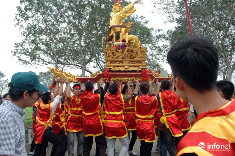 Các thanh niên trong làng khiêng "Chúa" về đền Sái.