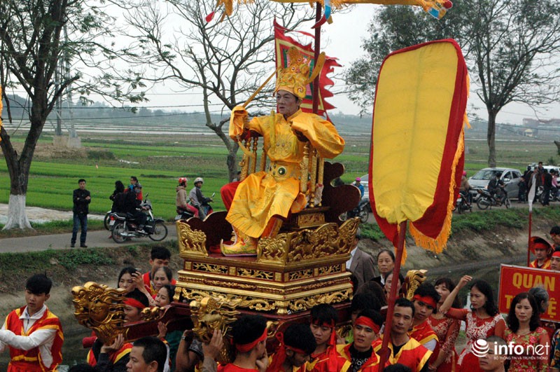 Năm nay, ông Nguyễn Phú Quý (71 tuổi) có vinh dự làm Vua. Từ sáng sớm, ông Quý mặc long bào tới sân đình làm lễ. Còn người đóng vai Chúa là ông Lê Quang Bản (69 tuổi). Ông Bản cho biết, được giả vai là rất may mắn, phải mở tiệc khao cả làng.