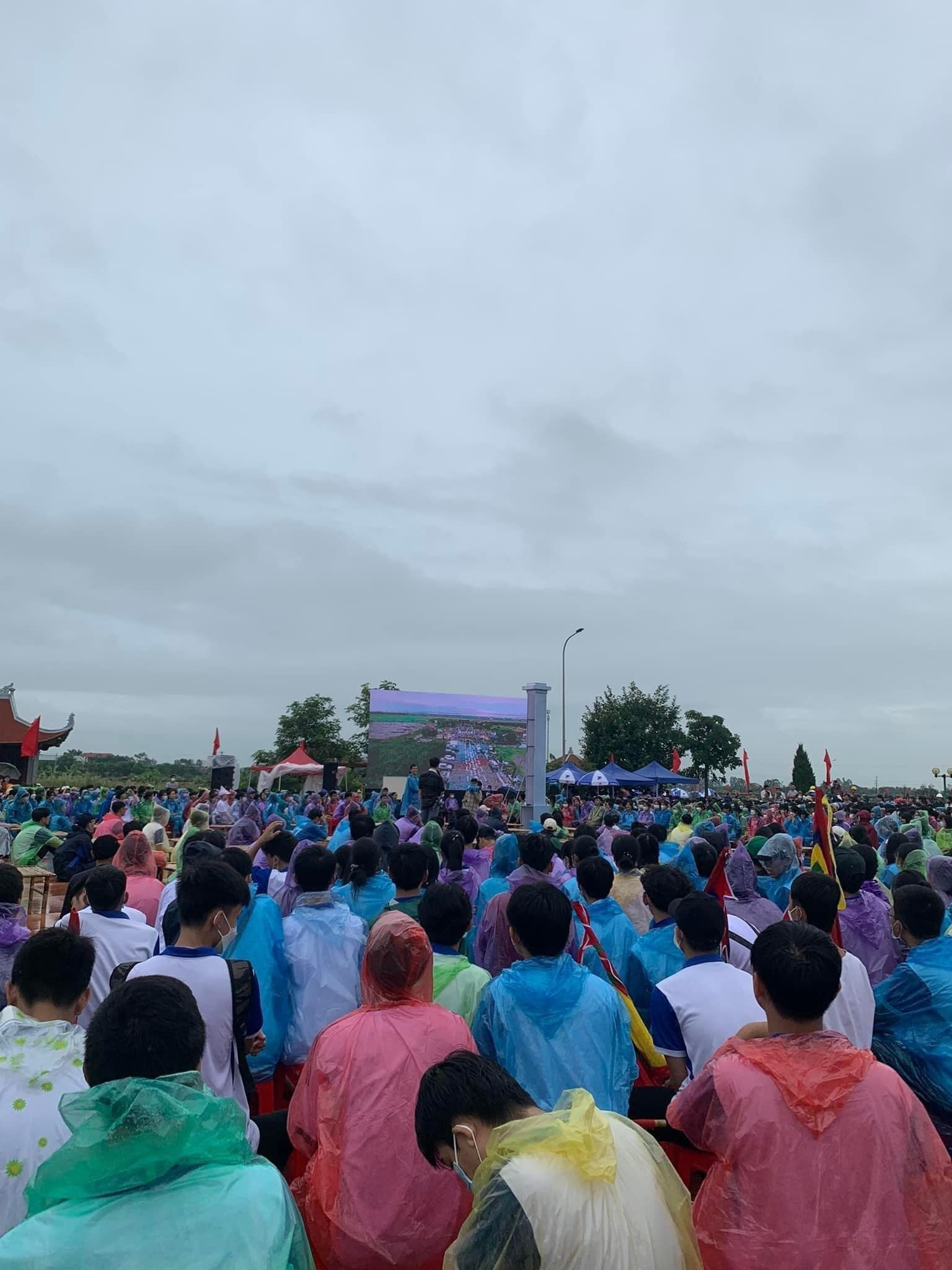 "Không quản công lao bà con mấy hôm dầm mưa trang hoàng cho buổi hôm nay. Đúng là Vũ - vượt qua mọi mưa gió thành công. Chúc mừng em!".
