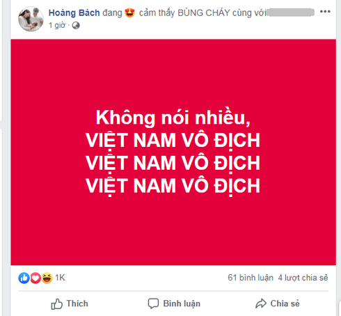 Ca sĩ Hoàng Bách khẳng định: "Việt Nam vô địch!" sau trận U22 Việt Nam "vùi dập" U22 Indonesia.