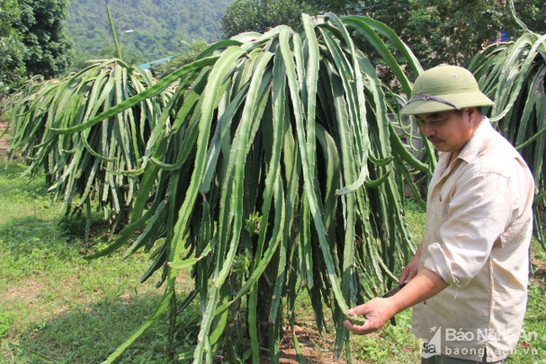 Một ngày đầu tháng 11, chúng tôi tìm về làng Bãi Sở (xã Tam Quang, huyện Tương Dương), khi người dân nơi đây đang tất bật thu hoạch lứa thanh long cuối cùng trong năm. “Năm nay mưa nhiều quá, dẫn tới sâu bọ cũng nhiều, chúng tôi bắt không xuể nên quả nhìn bề ngoài không được đẹp. Nhưng dù sao cũng không đến nỗi nào, chất lượng thì vẫn thế”, ông Tống Văn Chiến (57 tuổi), cầm trên tay quả thanh long ruột đỏ nặng gần 1 kg hồ hởi nói.