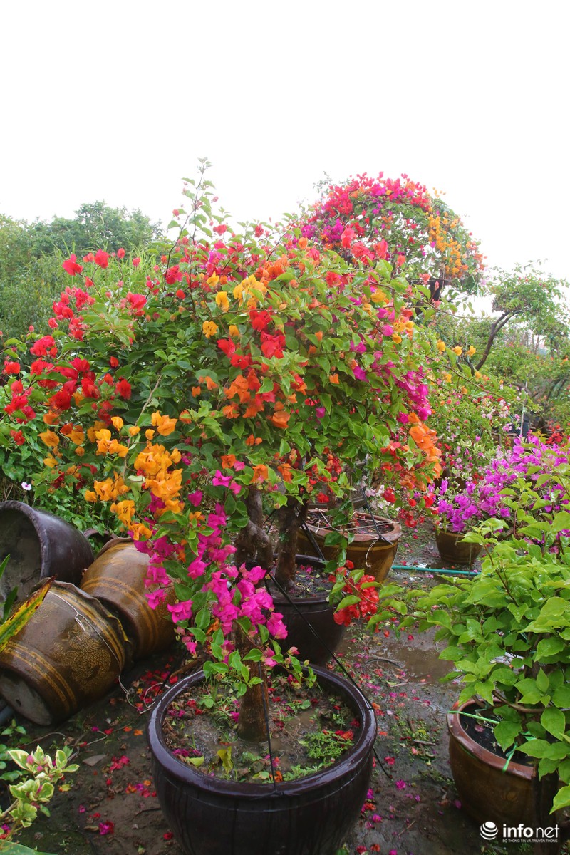"Hoa giấy ngũ sắc là loài cây thân gỗ được ghép nhiều cây hoa giấy có màu hoa khác nhau trên một thân 1 cây để tạo ra 1 cây hoa ngũ sắc. Thời gian để tạo ra một cây hoa giấy nhiều màu hoàn chỉnh mất khoảng 5-6 tháng" - Chủ một vườn hoa ởVăn Giang, Hưng Yên cho hay.