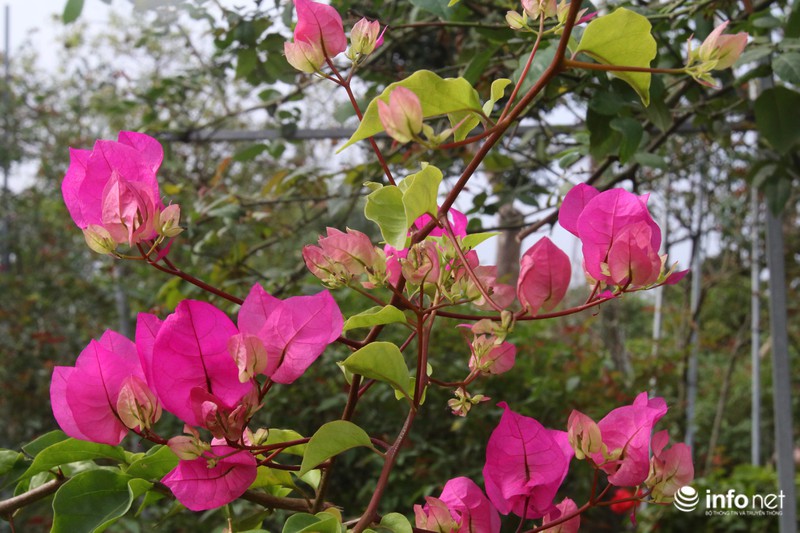 Những ngày này đi quahuyện Văn Giang, Hưng Yên, người yêu hoa như bị "hớp hồn" bởi những cây hoa giấy ngũ sắc được nhập từ Thái Lan đang được các nhà vườn tại đây chăm sóc phục vụ bán cho người chơi hoa Tết.