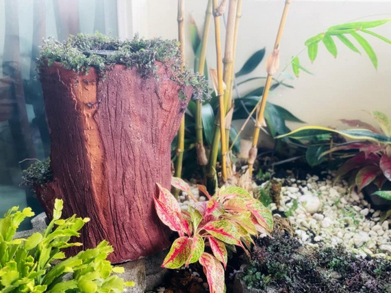 Chị bộc bạch: "Việc trồng cây trên sân thượng rất vất vả, đòi hỏi siêng năng và kiên nhẫn rất nhiều. Thế nên nếu mình làm vườn sân thượng theo kiểu truyền thống, chỉ đơn thuần là những chậu nhựa xếp cạnh nhau thì có lẽ chỉ sau vài năm mình sẽ nhàm chán. Mình đam mê vườn hơn 20 năm nay cũng vì mình luôn kết hợp tính nghệ thuật, mang phong cảnh thiên nhiên, như mô hình thu nhỏ, vào không gian nhà. Như vậy mình sẽ luôn cảm thấy tươi mới mỗi khi lên thăm vườn".