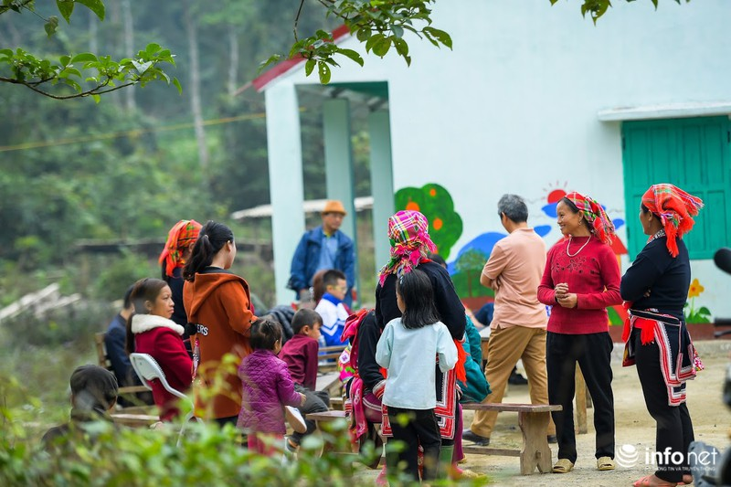 Người dân thôn Nà Bó vui mừng vì sắp có lớp học mới cho điểm trường. |