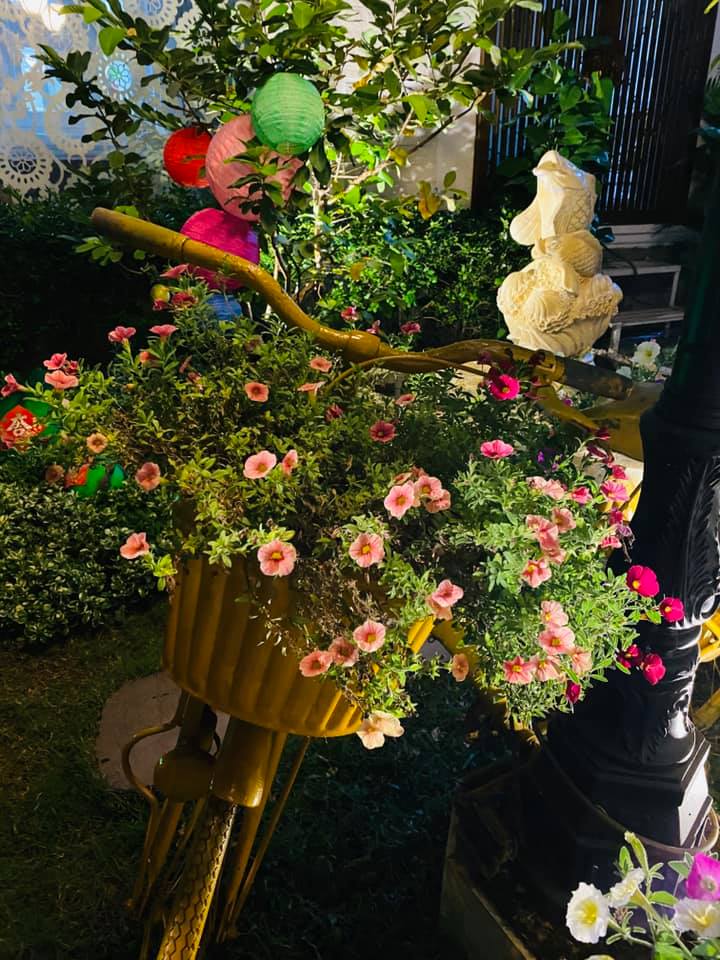 Vy Oanh cũng có sở thích ngắm hoa và chăm sóc cây trái trong vườn nhà.
