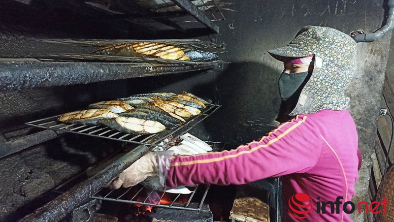 Theo ghi nhận của PV, dọc bờ đê biển là những ngôi nhà san sát nhau, những xưởng chế biến thu mua hải sản đang có hàng trăm người ở các độ tuổi khác nhau làm các công việc như bóc tôm, làm cá, nướng cá...bên ngoài bờ biển có hàng chục người phụ nữ đang đợi những chuyến tàu, bè cập bến để vận chuyển cá lên các xe tải chờ sẵn để bốc hàng, mang vác đá xuống tàu, đưa dầu, nước...để kiếm thêm thu nhập trang trải cuộc sống hàng ngày.
