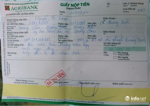 Bà Nguyễn Thị Loan hoàn trả ngân sách cho xã nhưng không nộp vào Kho bạc Nhà nước theo quy định mà nộp vào Ngân hàng Agribank chi nhánh Bắc Quảng Bình. Nội dung “giấy nộp tiền” ghi “nộp phí chứng thực năm 2016” với tổng số tiền của 3 giấy gửi tiền này là 49.910.000 đồng.