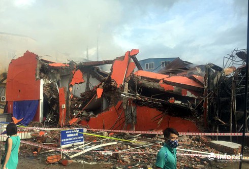 Bên cạnh đó, vị đại diện Phòng Cảnh sát PCCC số 8 cũng nhận định: “Khi cháy, tường gạch của siêu thị bị đổ sập xuống đè lên các đám cháy còn đang âm ỉ nên sáng nay chúng tôi vẫn điều xe, lực lượng đến để tổ chức phun nước vào dập tàn. Nguyên nhân ban đầu của vụ cháy nghi là do chập điện ở quầy ăn nhanh của siêu thị".