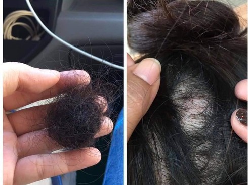 Mảng tóc của chị Warakorn J.Kulsawad rơi ra sau khi bị hành hung. |