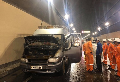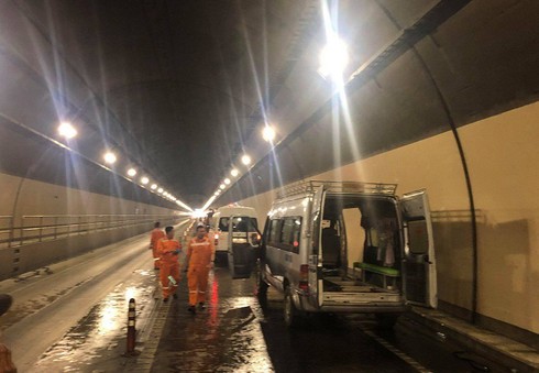 Thời điểm trên, xe ô tô loại 16 chỗ BKS 43B-011.85 đang chạy trong hầm Hải Vân hướng từ Đà Nẵng đi Thừa Thiên - Huế chở theo quan tài và nhiều người.