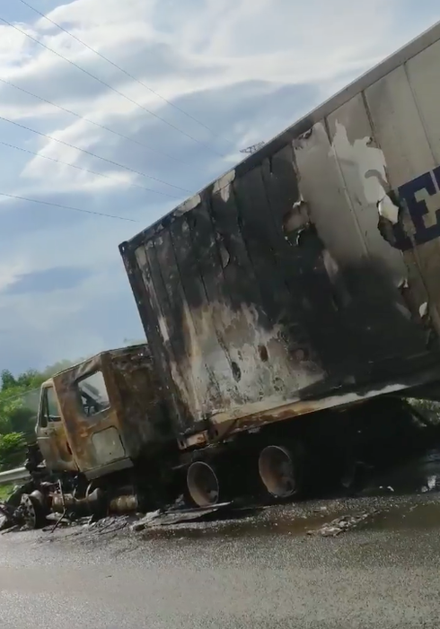 Vụ cháy khiến chiếc xe container cháy rụi hoàn toàn. Nguyên nhân vụ cháy đang được cơ quan chức năng làm rõ.