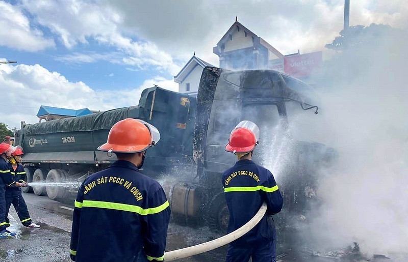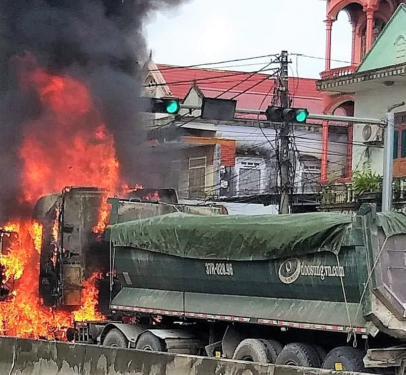 Vụ cháy xảy ra vào khoảng 9h ngày 04/10/2022 trên tuyến Quốc lộ 1A, qua địa bàn phường Quỳnh Xuân, thị xã Hoàng Mai, Nghệ An.