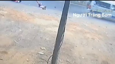 | Clip ghi lại cảnh 2 học sinh nghi văng từ xe chở học sinh xuống đường (Nguồn Tôi là dân Trảng Bom) |