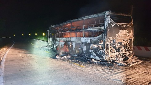Xe khách cháy trơ khung trên đường HCM, hàng chục người hoảng loạn tháo chạy